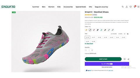 この困難な時期に、Facebookの広告でサガロの靴を見つけました。以前から裸足の靴を試してみたかったので、64.99ドルの特別価格が39.99ドルに割引されているのを見て興味を持ちました。グレー、ピンク、青と緑のアクセントがついた魅力的なカラーと、無料配送の追加特典が、見逃せないお得な買い物にしました。