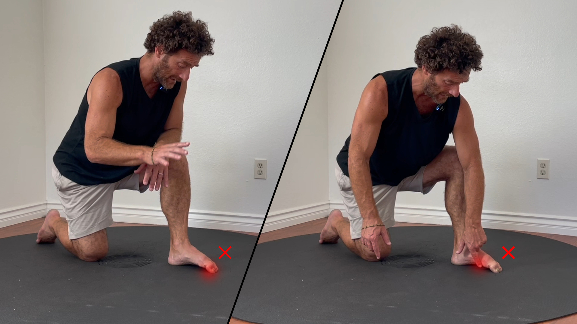 対策: 意識を完全に足アーチに集中させます。足指はリラックスして地面に置いたままにします。