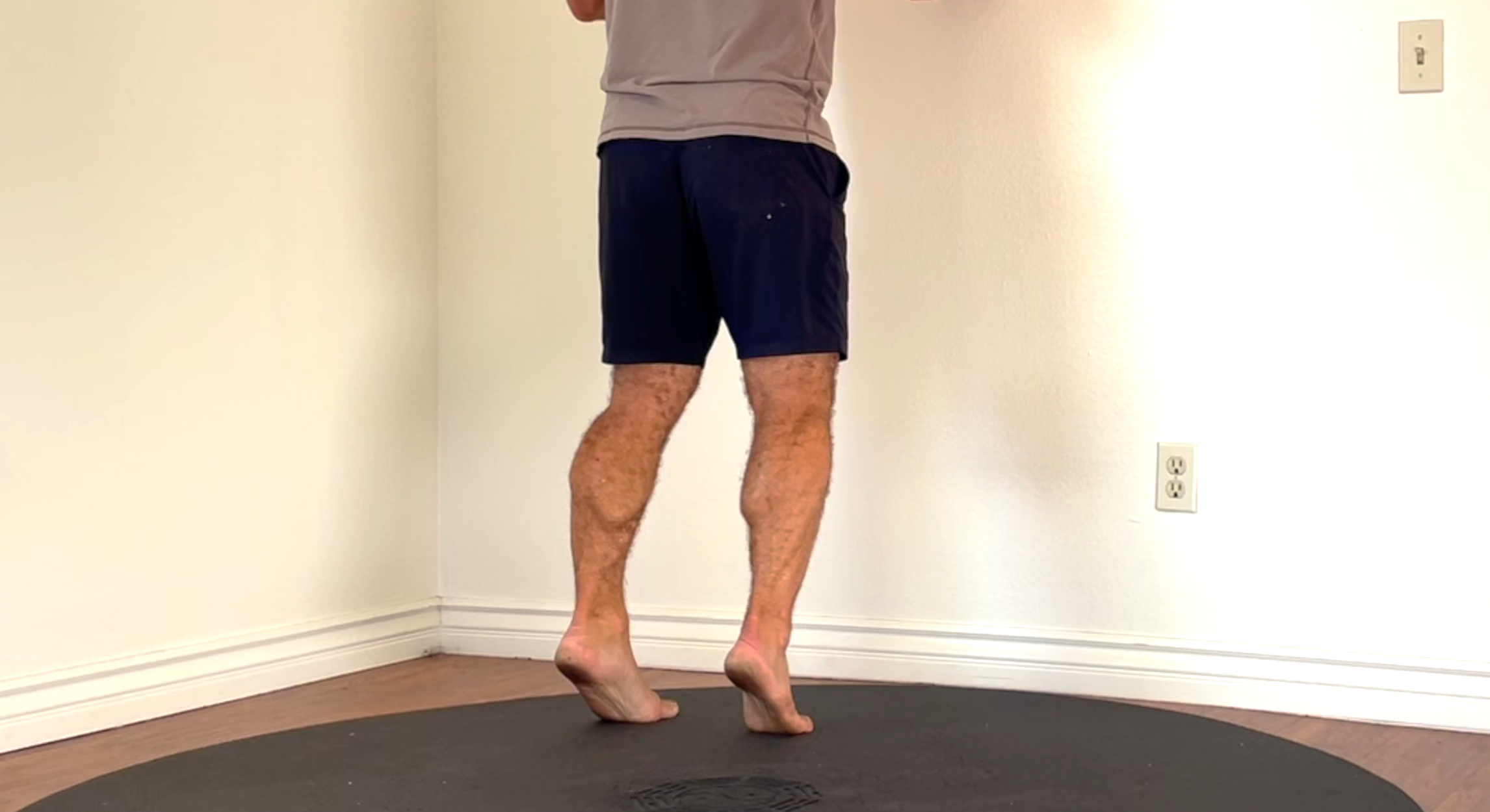 ヒールレイズは一般的ですが、裸足トレーニングの理念でより精密に行います。