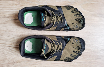 わずかな破れだけで靴を捨てることはできませんでした。普通の縫い付けでは効果がなく、あるとき黒いシカフレックス(シーラント)を使った修理を思いつきました。このDIY方法が驚くほどうまくいき、サグアロに数年分の寿命を与えてくれました。
