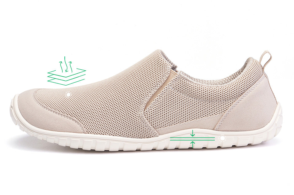 - 天然ゴム製ソール:耐久性があり、滑りにくく、環境に優しい素材で、自然な動きを妨げません。